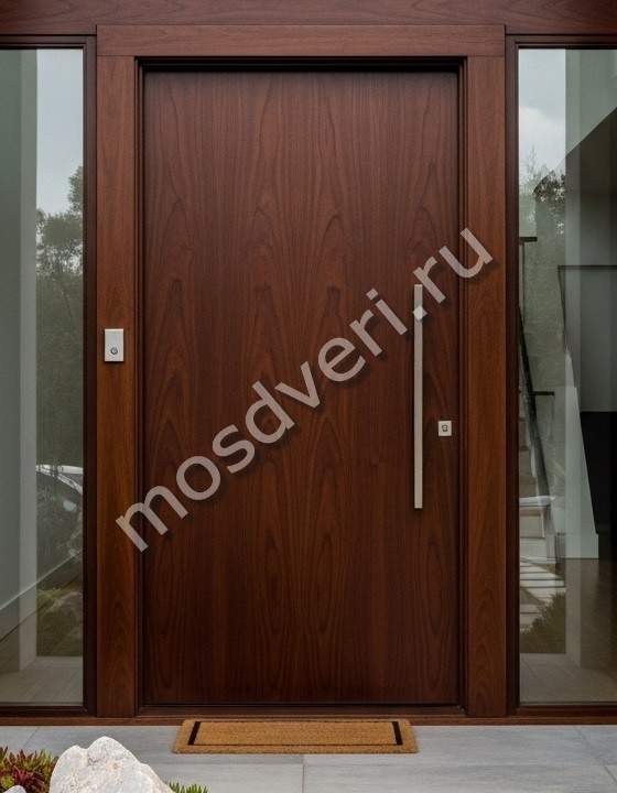 Большая входная дверь в частный дом темно-коричневая — совмещает стильный внешний вид и высокую надёжность.