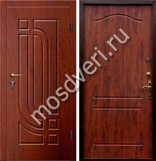 Входная дверь с отделкой панелями МДФ цвета махогон — совмещает стильный внешний вид и максимальную защиту.
