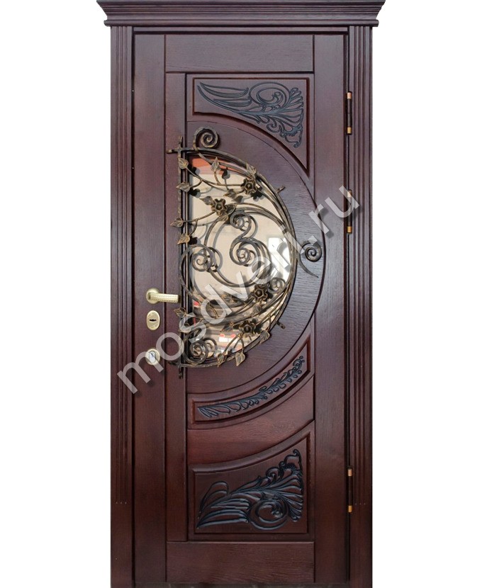 Дверь для загородного дома ZCH-32 с ковкой и стеклом — закажите уже сегодня! Напишите менеджеру, и получите бесплатную консультацию уже сегодня. Выезд специалиста — по вашему графику!