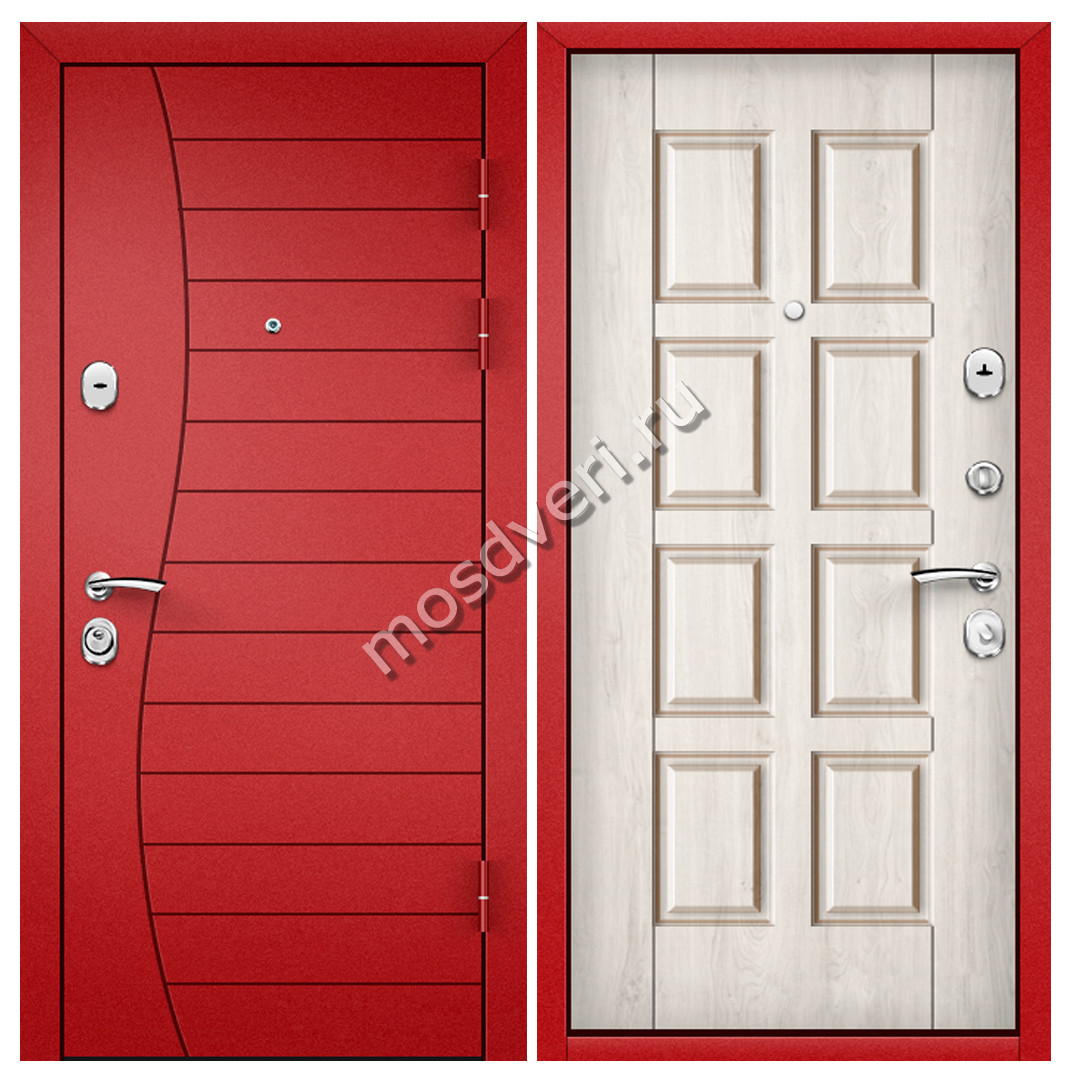 Красная входная дверь в квартиру KVD-05 — совмещает современный дизайн и превосходные защитные характеристики.