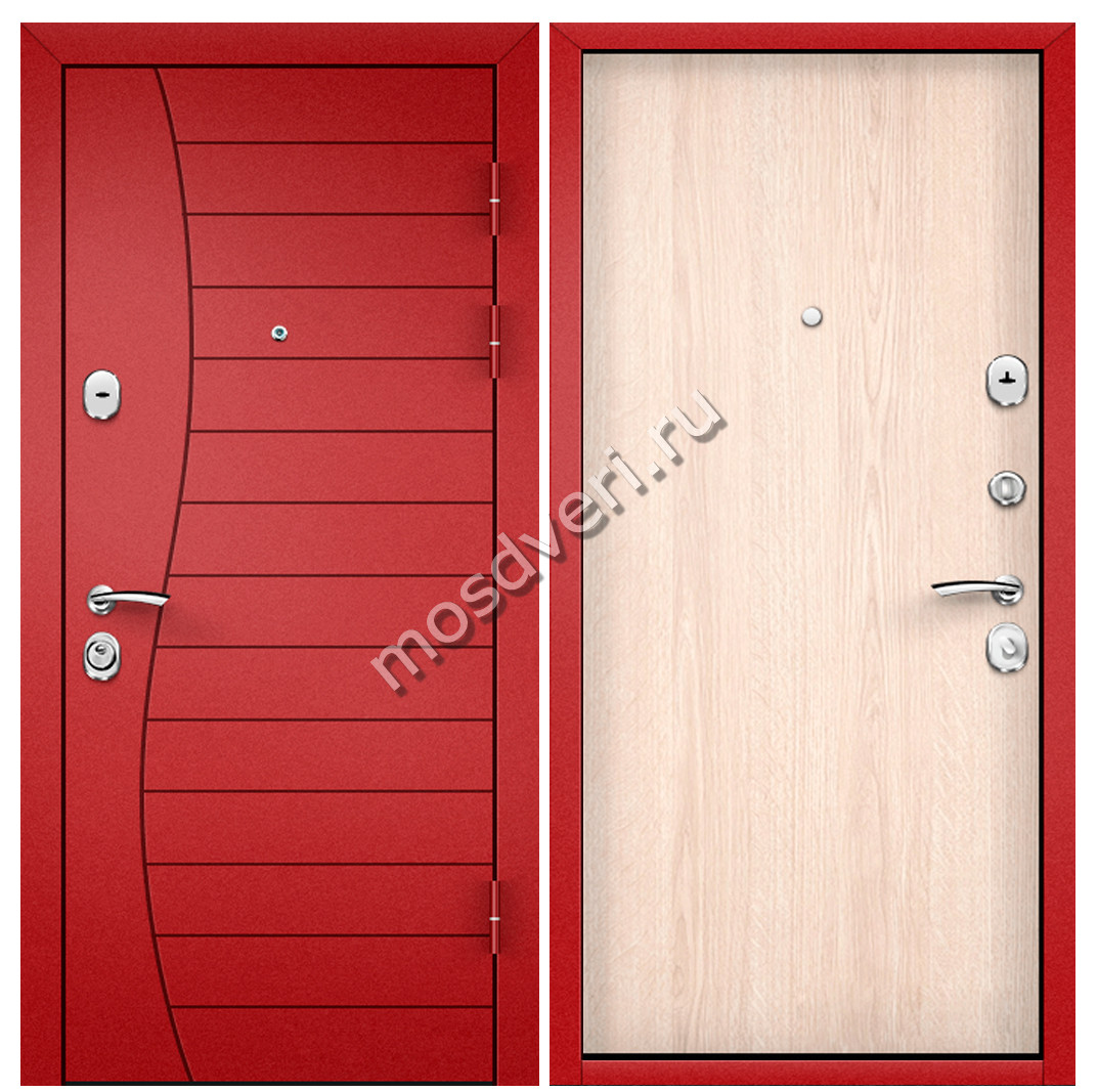 Красная входная дверь в квартиру KVD-16 — закажите уже сегодня! Позвоните нам, и узнайте точную цену в течение 15 минут. Выезд специалиста — по вашему графику!